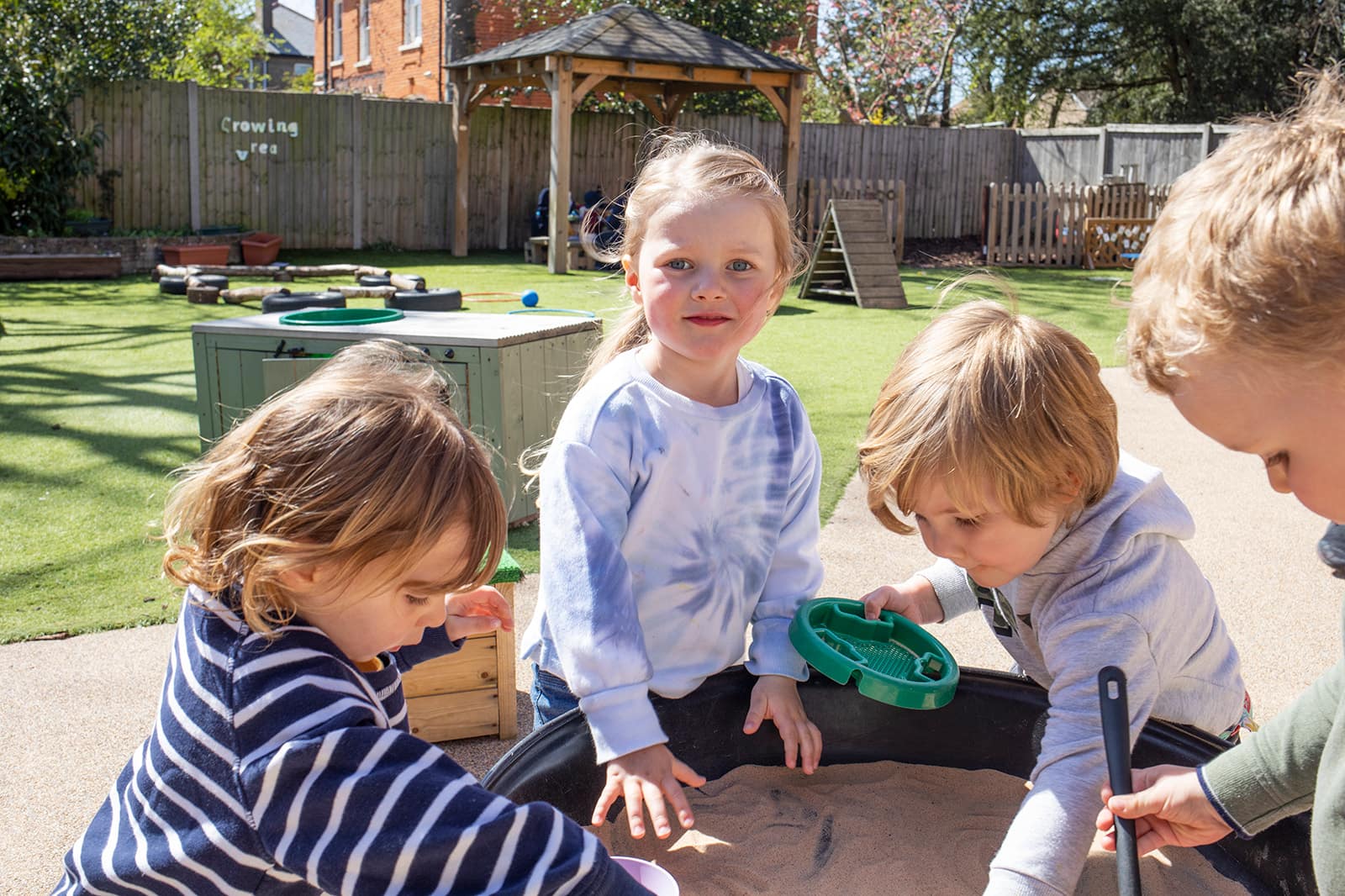 Our homebase rooms are not only warm and calm spaces for children to play and learn but are also bright and airy, with beautiful bay windows which look out into our fun and engaging outdoor classroom.